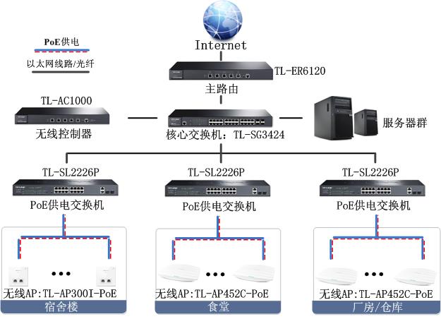TL-AP452C-PoE支持吸頂和壁掛安裝,采用11N無線技術(shù),無線速率最大達(dá)450Mbps,非常適合食堂、廠房、倉庫等面積較大環(huán)境;TP-AP300I-PoE采用國標(biāo)86盒設(shè)計(jì),無線速率最大可達(dá)300Mbps,非常適合宿舍等房間密集型環(huán)境。兩者配合可實(shí)現(xiàn)工廠全部區(qū)域無線網(wǎng)絡(luò)覆蓋。