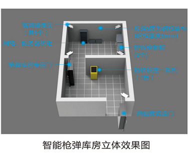 根據(jù)上述要求,武器彈藥庫(kù)安防系統(tǒng)設(shè)計(jì)包括智能槍彈柜系統(tǒng)、門(mén)禁系統(tǒng)、等組成。