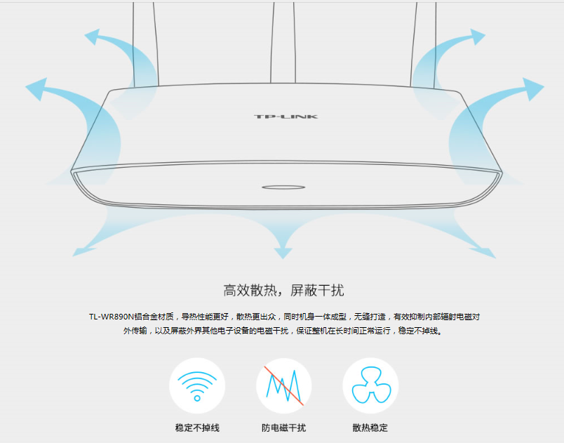 TL-WR890N鋁合金材質,高強度鍛壓薄至2mm,一體成型,精湛工藝技術是我們的保障;獨特陽