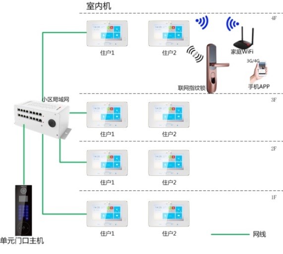 2.不同業(yè)主室內(nèi)機之間可雙向呼叫對講;